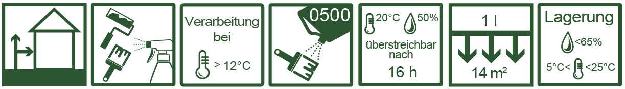 Die Untergründe müssen trocken (Holzfeuchte max. 12%), sauber und fettfrei sein, evtl. mit Verdünnung 0500 reinigen. Alte Anstriche gründlich entfernen.